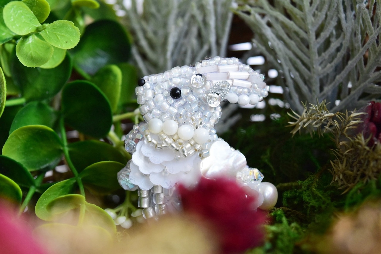 天然石やビーズを使用した一点物の刺繍アイテム。